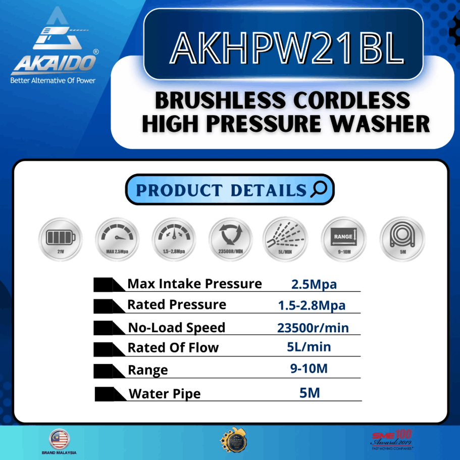 AKAIDO BRUSHLESS CORDLESS HIGH PRESSURE WASHER AKHPW21BL