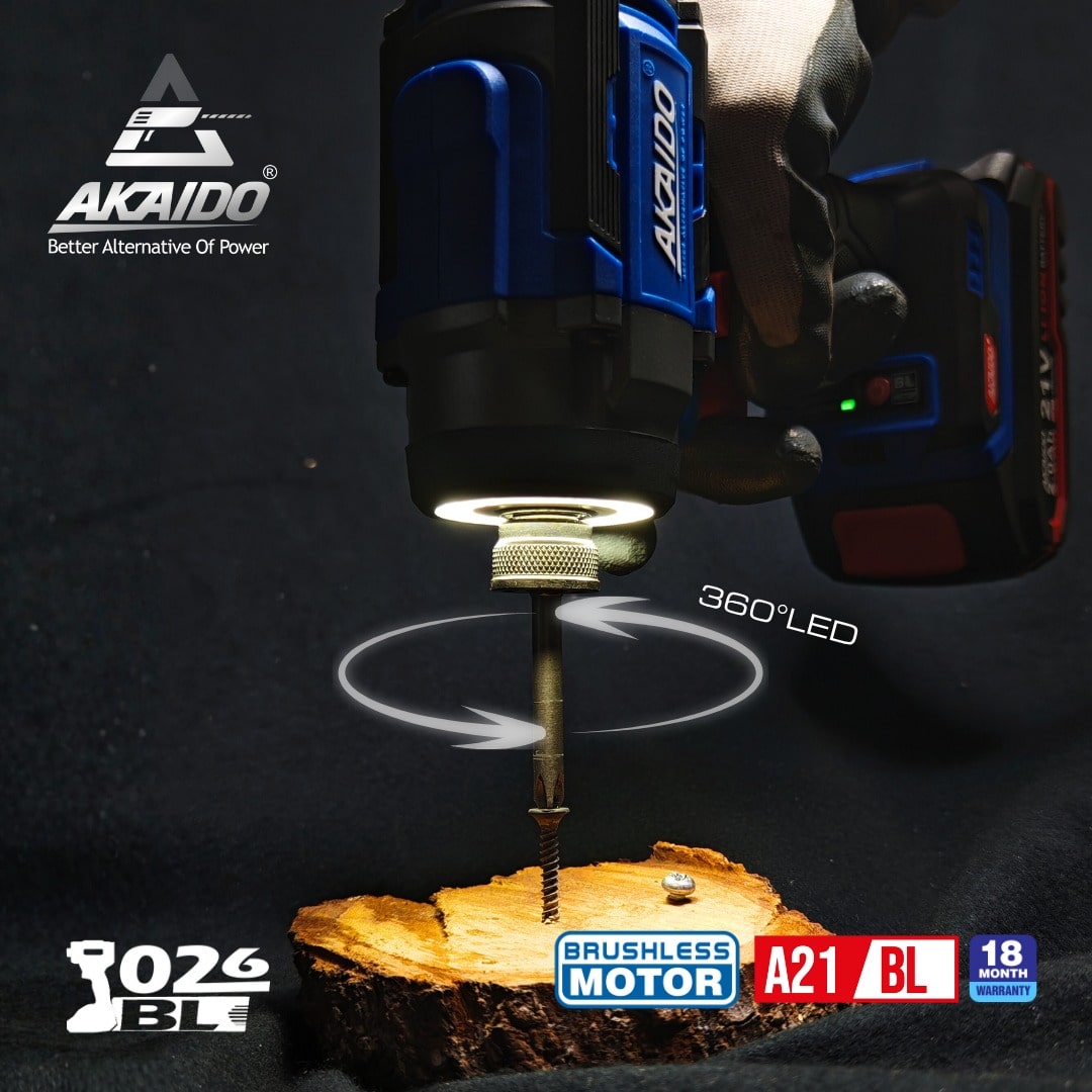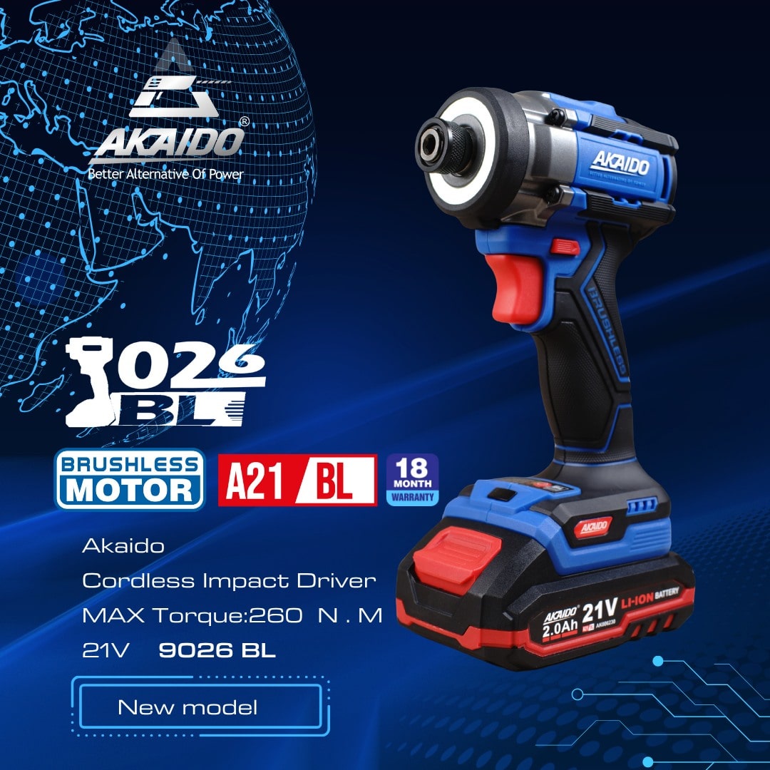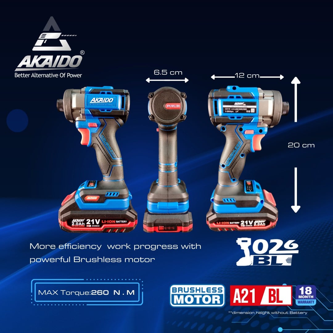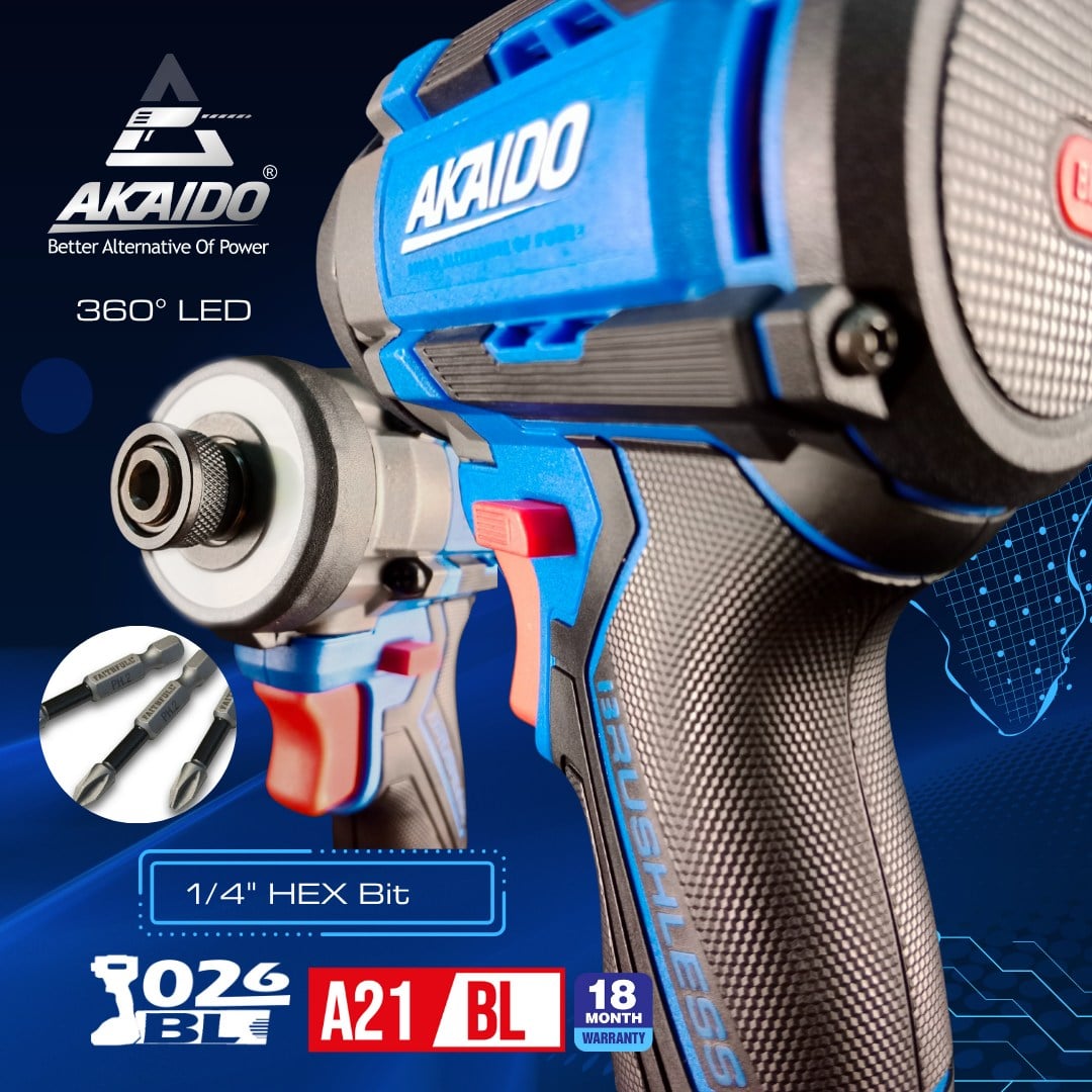 AKAIDO BRUSHLESS CORDLESS IMPACT DRIVER AKM9026BL 21V Mesin Bateri Pengikat Skru Impak tanpa wayar