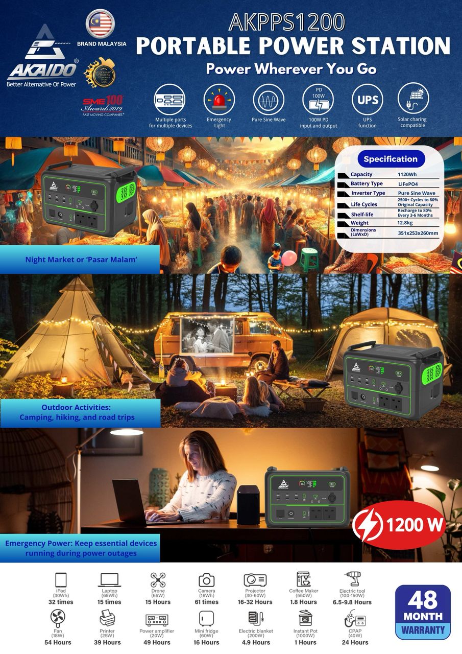 Introducing the all-new 𝗔𝗞𝗔𝗜𝗗𝗢 𝗣𝗼𝗿𝘁𝗮𝗯𝗹𝗲 𝗢𝘂𝘁𝗱𝗼𝗼𝗿 𝗣𝗼𝘄𝗲𝗿 𝗦𝘁𝗮𝘁𝗶𝗼𝗻 — expertly engineered for outdoor enthusiasts, campers, photographers, and emergency situations. 𝗔 𝗽𝗼𝘄𝗲𝗿𝗳𝘂𝗹 𝗰𝗼𝗺𝗯𝗶𝗻𝗮𝘁𝗶𝗼𝗻 𝗼𝗳 𝗵𝗶𝗴𝗵 𝗽𝗲𝗿𝗳𝗼𝗿𝗺𝗮𝗻𝗰𝗲, 𝗹𝗮𝗿𝗴𝗲 𝗰𝗮𝗽𝗮𝗰𝗶𝘁𝘆, 𝗮𝗻𝗱 𝗺𝘂𝗹𝘁𝗶-𝗳𝘂𝗻𝗰𝘁𝗶𝗼𝗻𝗮𝗹𝗶𝘁𝘆, 𝗮𝗹𝗹 𝗶𝗻 𝗼𝗻𝗲 𝗰𝗼𝗺𝗽𝗮𝗰𝘁 𝗱𝗲𝘃𝗶𝗰𝗲. ![]()
