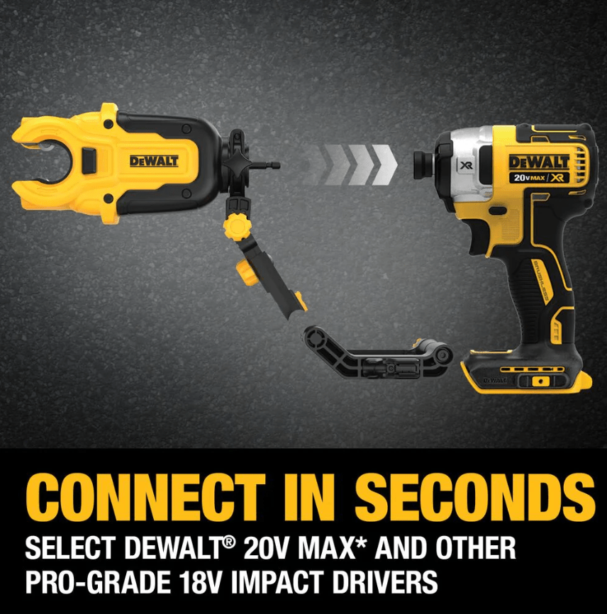 Transform your impact driver† into a fast and powerful copper pipe cutter with the innovative DEWALT® IMPACT CONNECT™ Copper Pipe Cutter Attachment‡. Cut 4X faster† and avoid the hassle of hand tools with an attachment that leverages the power of your existing impact driver. The revolutionary quick-change brace system attaches in seconds and allows you to seamlessly switch between cutting pipe and driving screws without additional interruptions. Send your productivity into overdrive with IMPACT CONNECT™ products that are designed to work with select DEWALT® 20V MAX* and other pro-grade 18V Impact Drivers‡.