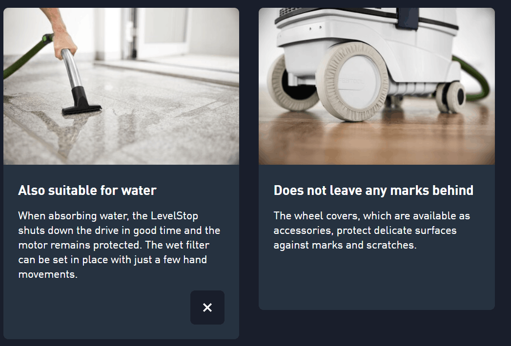 - Flexible and clean in the workshop and at the construction site thanks to a compact design and a container volume of 26 litres