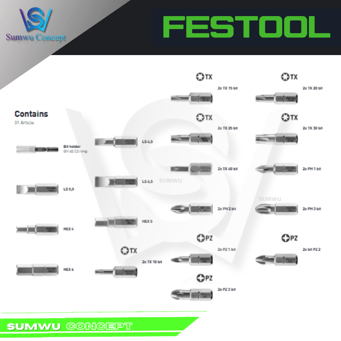 Festool 769138 BIT/BH-SORT/31x Centrotec 31pcs Mixed Bit Cassette for Festool cordless drills and cordless percussion drills with FastFix tool reception and WH-CE CENTROTEC tool chuck