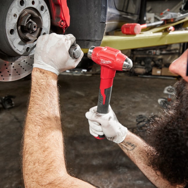 Milwaukee® 16oz Dead Blow Ball Peen Hammer offers the most durable handle and more control. The hammer’s steel reinforced handle delivers the most durable handle in the industry. The dead blow ball peen’s precision balanced design offers higher striking power with minimal effort. The dead blow ball peen hammer’s overmold handle and anti-slip grip provide more control while swinging to strike objects.