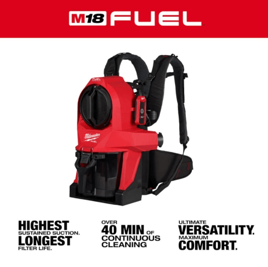 - The M18 FUEL™ 3.8 litre L class backpack vacuum brings outstanding performance, durability, and versatility to job site cleanup