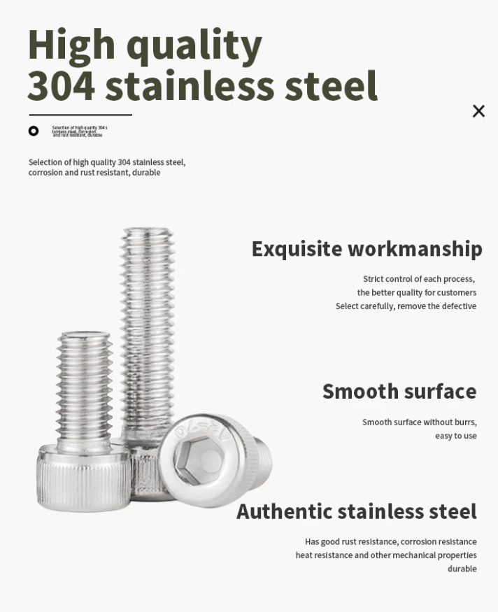 High Quality: Our screw is made up of high quality 304 stainless steel, which features is strength and offers good corrosion resistance in bad environment like high temperature, cold weather and high humidity areas. Stainless steel with superior rust resistant ensure long lasting results, corrosion resistance, durable, good toughness.