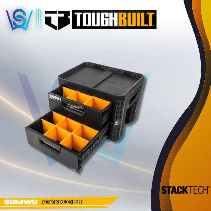The ToughBuilt® StackTech® 2-Drawer Locking Box splits tool Organisation into two independently locking drawers, offering protected access and heavy-duty storage without sacrificing stackability or strength.