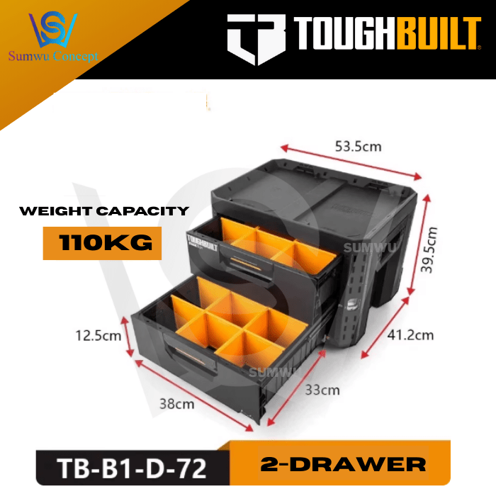 – 2-Drawer: Stores large tools and supplies, up to 110kg limit