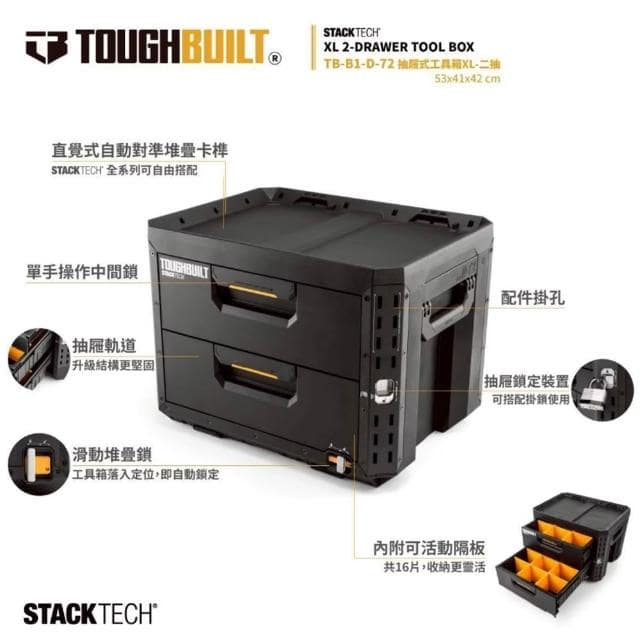 TOUGHBUILT StackTech XL 2-Drawer Locking Toolbox TB-B1-D-72