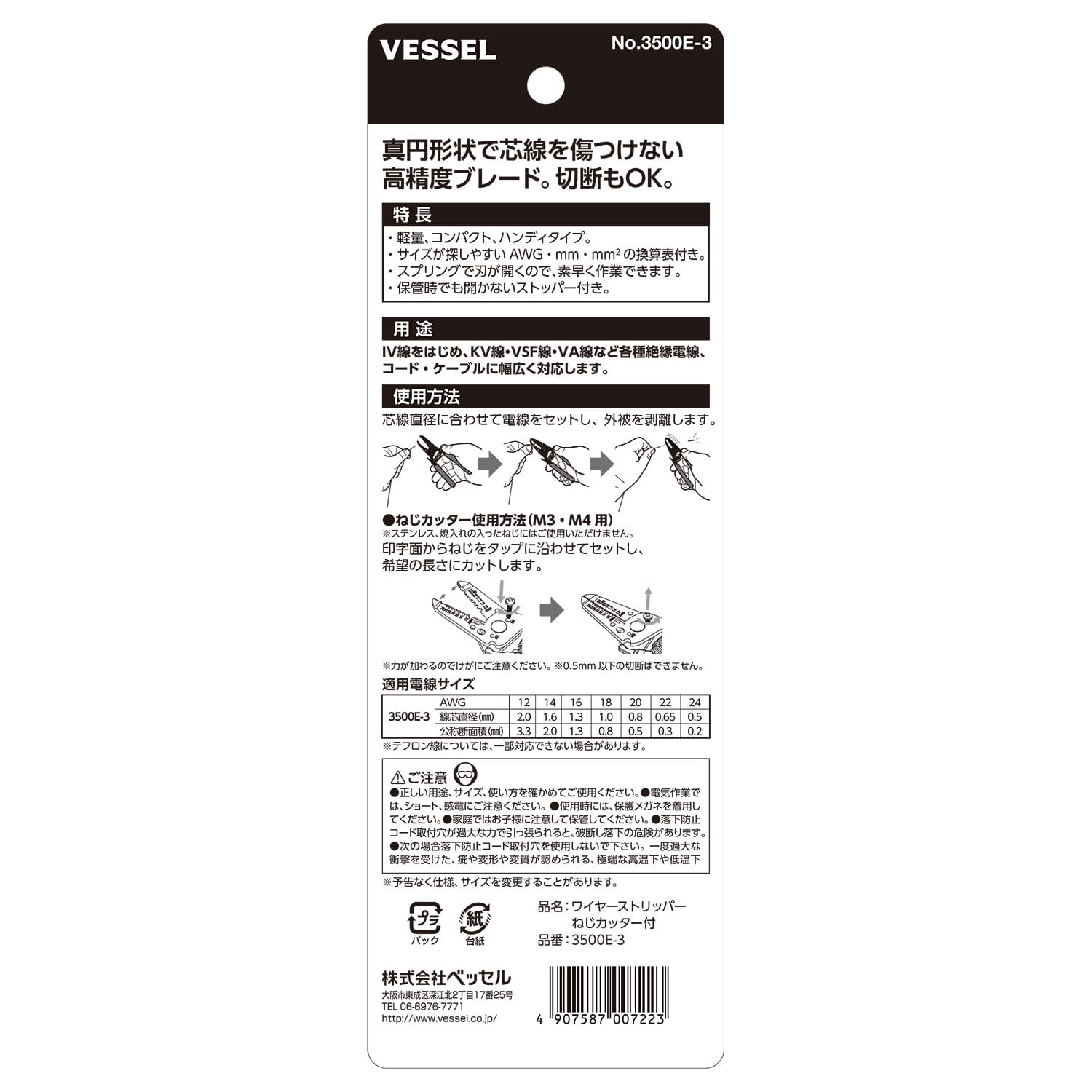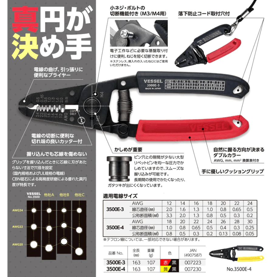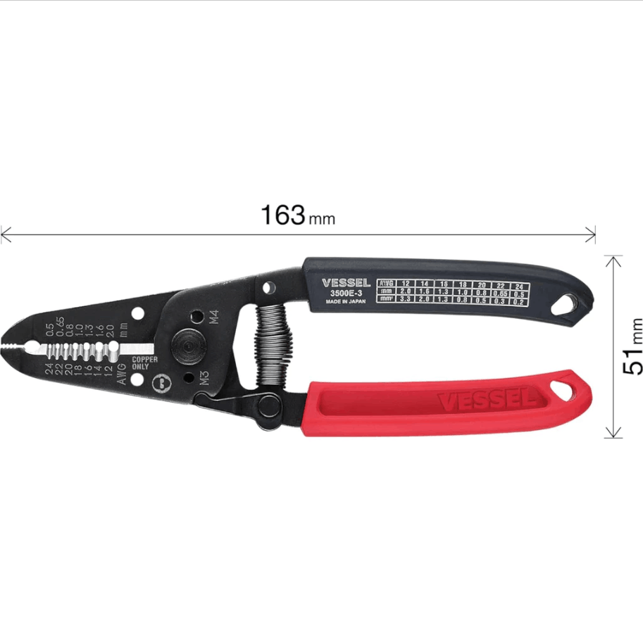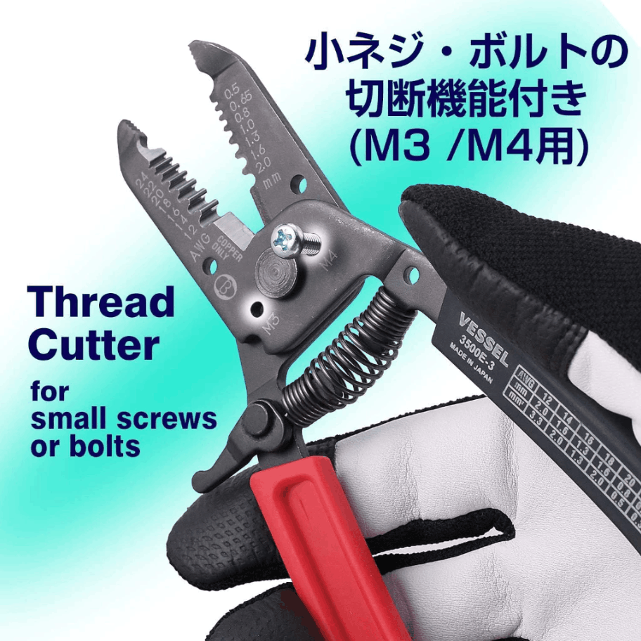 VESSEL 3500E-3 Wire Stripper with Thread Cutter (0.5-2.0mm) For Solid Stranded Wire