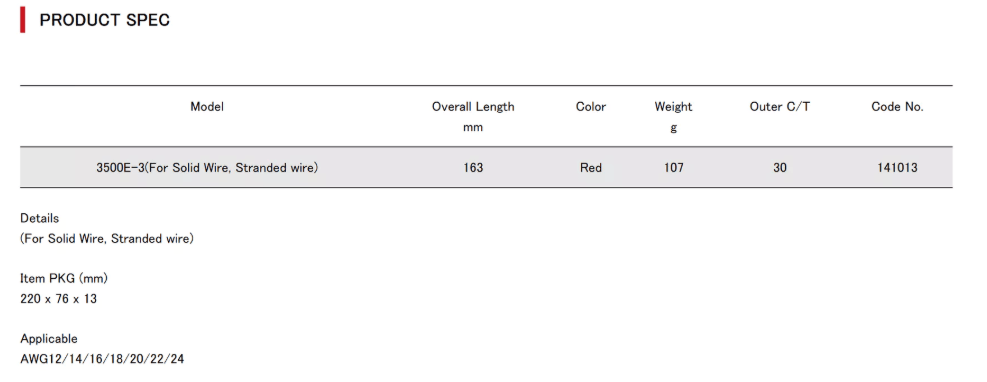 -Compatible with a wide range of IV wires, KV wires, VSF wires, VA wires, and other insulated wires.