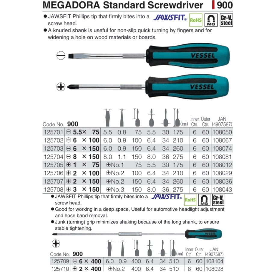VESSEL 900 MEGADORA SCREWDRIVER (+) 2 X 100