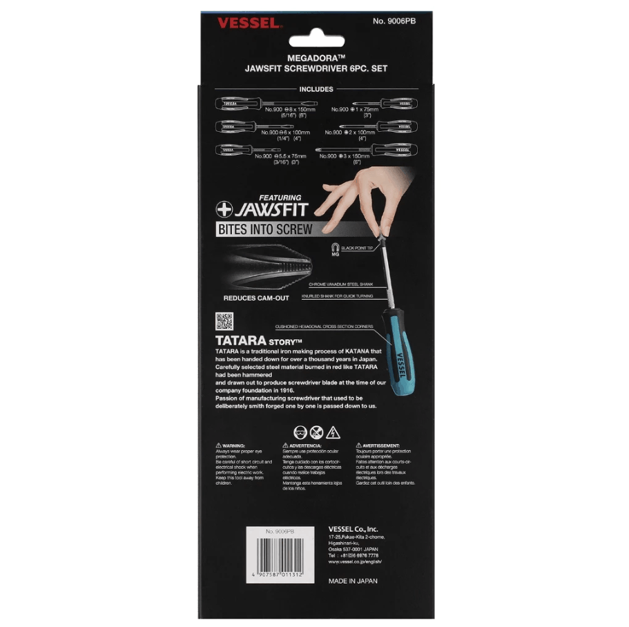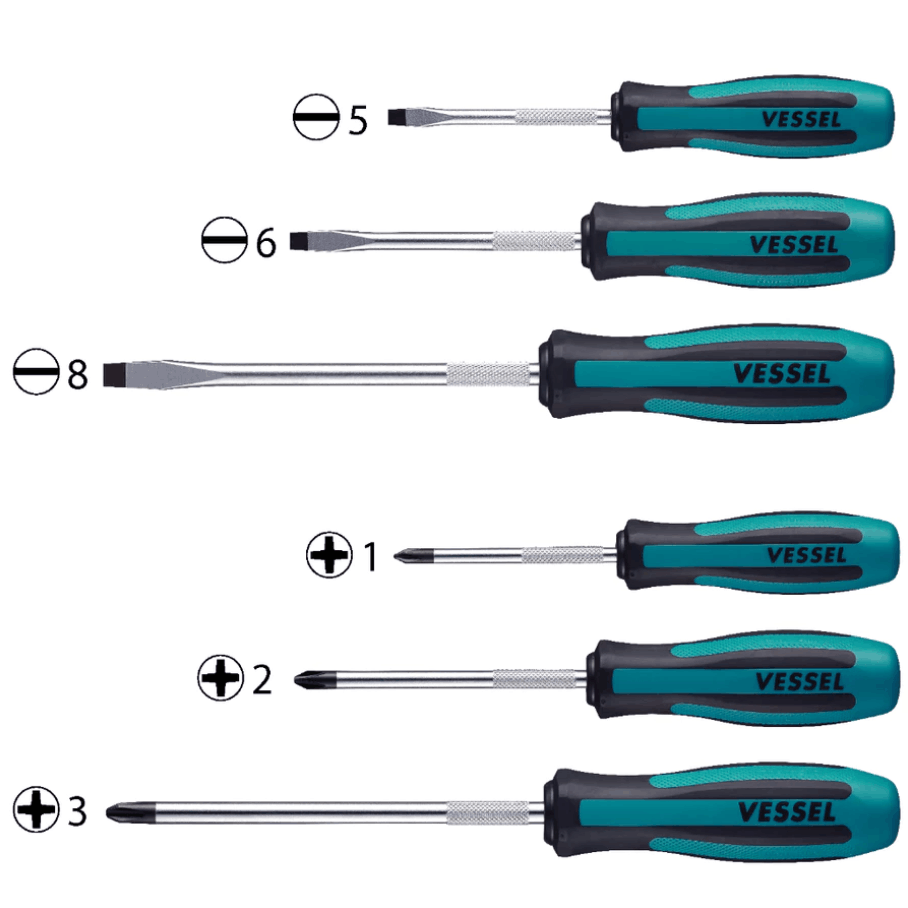 VESSEL 9006PB Megadora Screwdriver 6PC Set Phillips Slotted