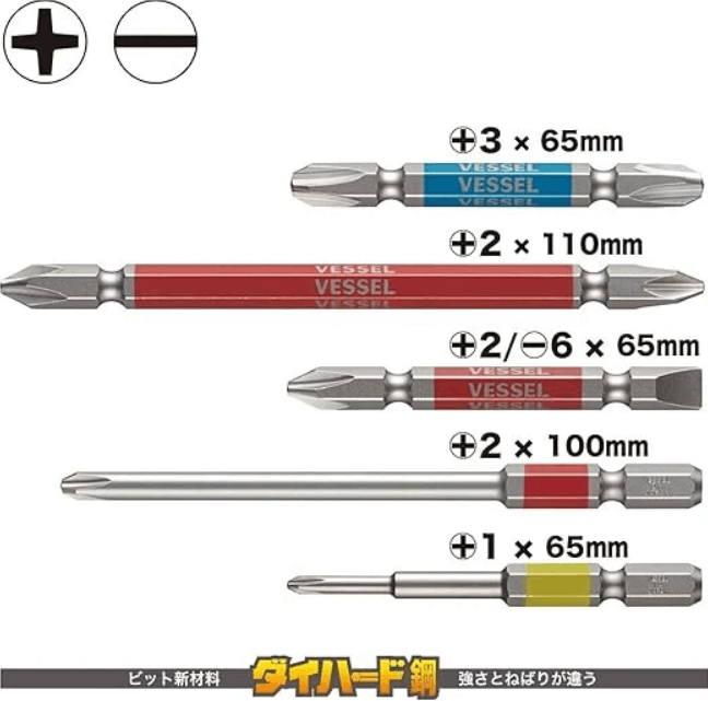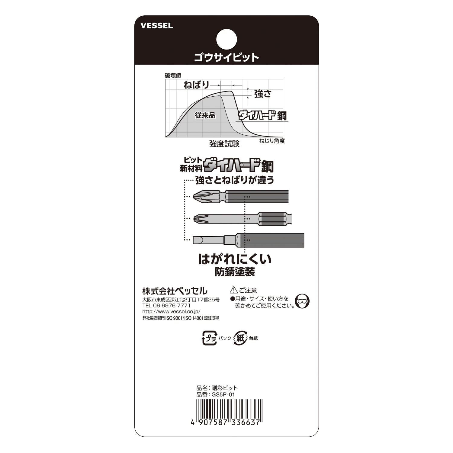 VESSEL GS5P-01 Assorted GOSAI Bit 5pc Set Max Hardness 62HRC Magnetic PH2 Driver Bits
