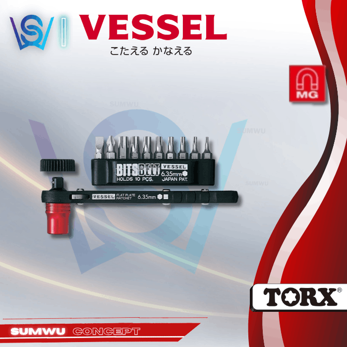 VESSEL TX-12MC Torx Plate Ratchet Screw Catcher (w/10 bits)