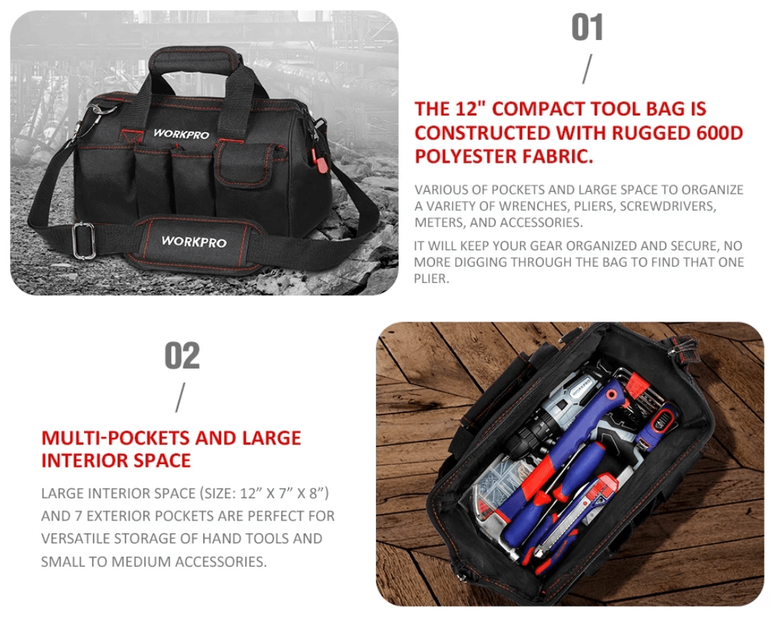 WORKPRO 14″ Waterproof Tool Storage Bags Travel Bags Men Crossbody Beg W081002WE